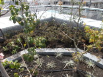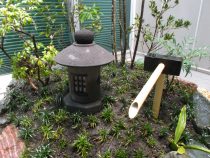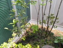 以前のビルを立て直し、耐震設計等をクリアした新築のビルの屋上に施工させて頂きました。既存の花壇がありましたので、それにオリジナルの花壇を施し、草花や樹木を多く配置しました。それらの乾燥を防いだり、根腐れ等の症状を出さない様、防水、透水、保水の為の水抜き穴等設置しております。耐重にも考慮し、施主様宅でパーライト、ピートモス、その他を混ぜ込み人口軽量土で作業しました。
