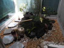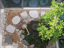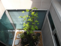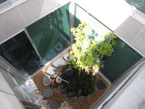 坪庭部分の和風庭園は、施主様宅の屋上部分ではなく、2階の吹き抜け部分の場所になります。吹き抜けですので、雨は吹き込みますのでこのような純和風の坪庭を施しました。