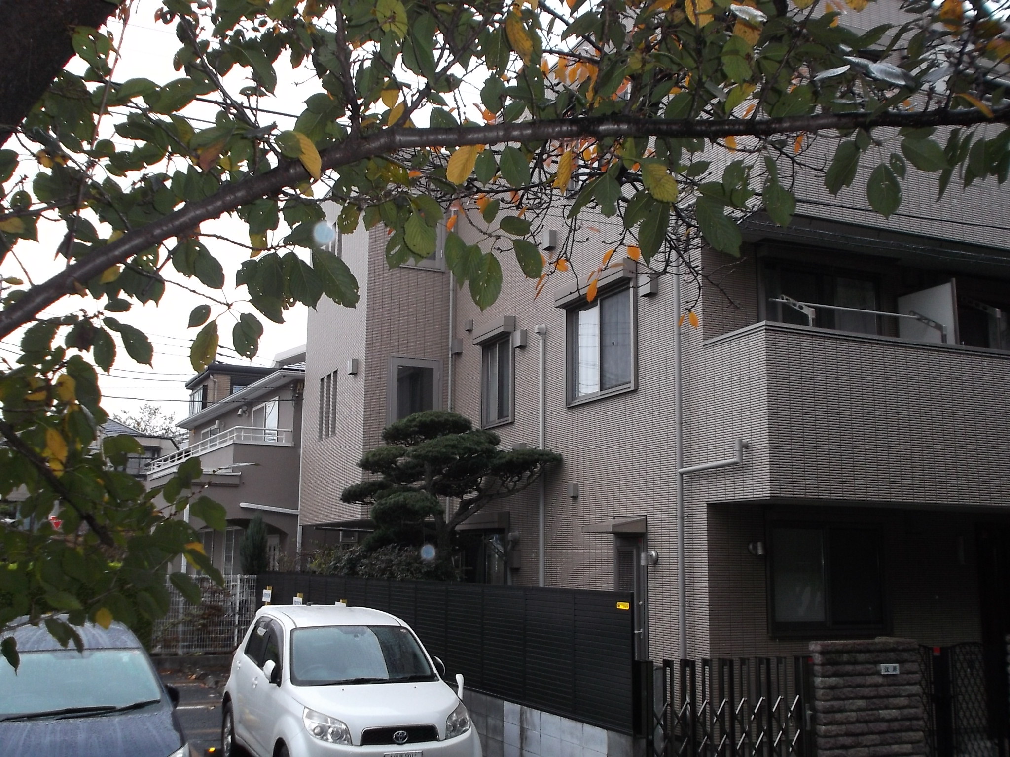 こちらお戻しする前の新築の施主様宅の風景です。向かいの公園のサクラの下から撮影しました。