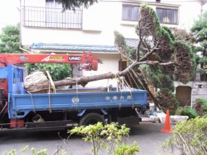 施主様がとても大切に育てて頂いたゴヨウマツを掘り取り、お預かりしてその後お戻ししました。引っ越しした植木も元気に活着しています。