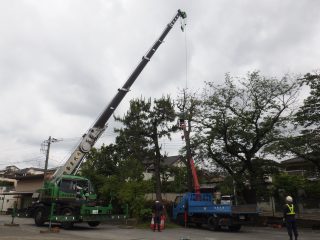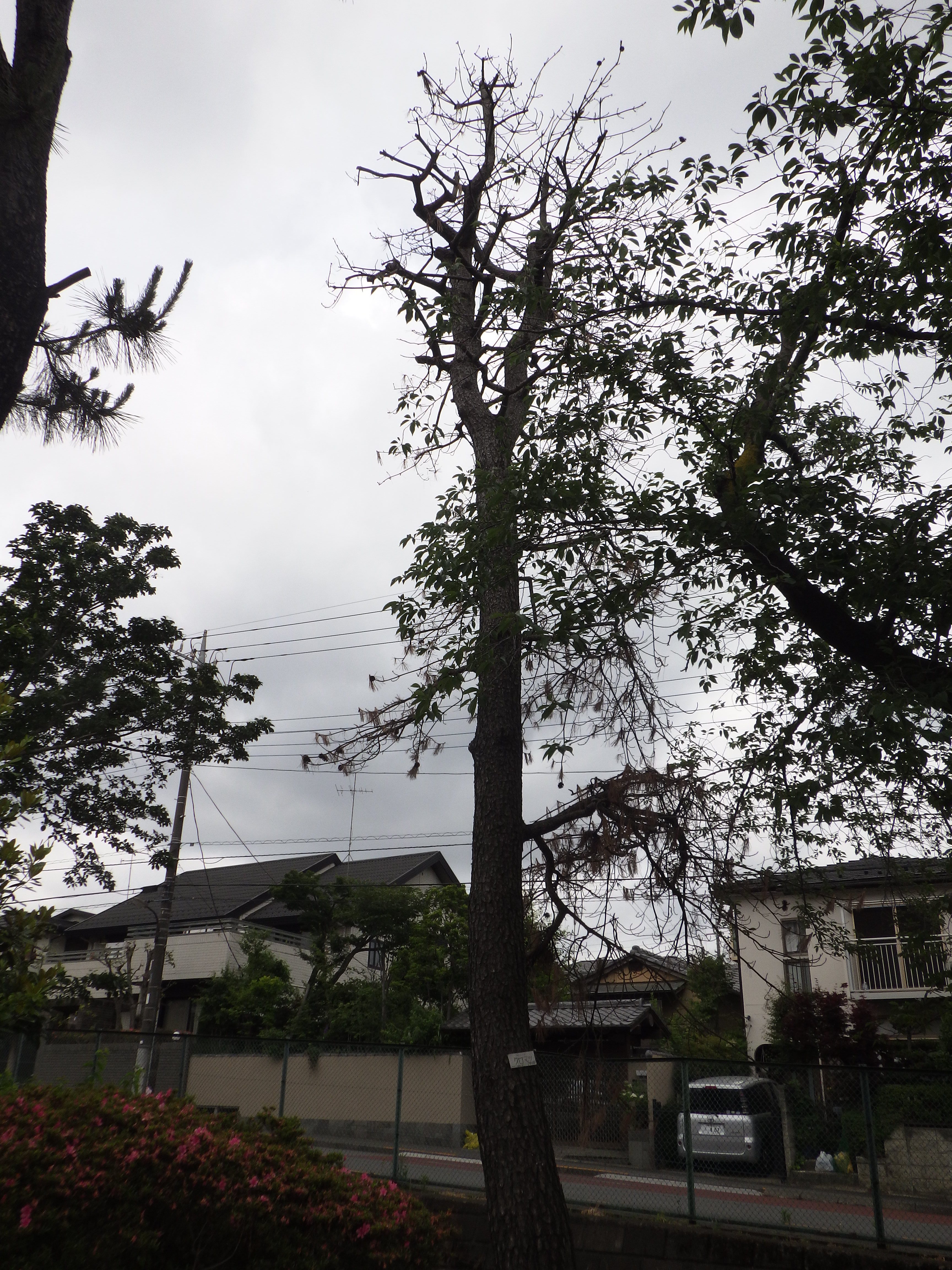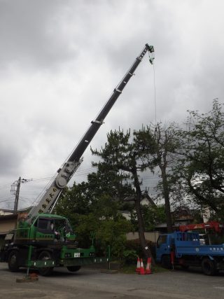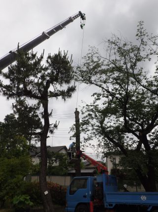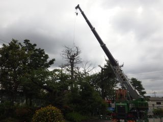 可哀 想に立ち枯れしてしまったクロマツの伐採作業です。重機会社に依頼して 施工を手伝っていただきまして無事終了しました。