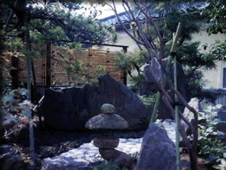 まず、「御簾垣」、「四つ目垣」で主庭部分を囲い、盛り土の後、三波石、伊勢五郎太石で中央部に「枯山水」をつくり「景」を引き締め、大胆さ、雄大さをかもし出しました。