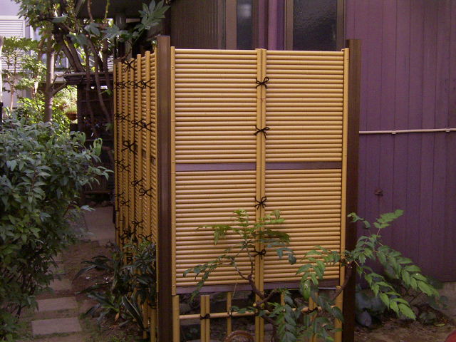 古くなった竹垣を撤去、処分し、エンピの御簾垣で仕切りを作り直しました。